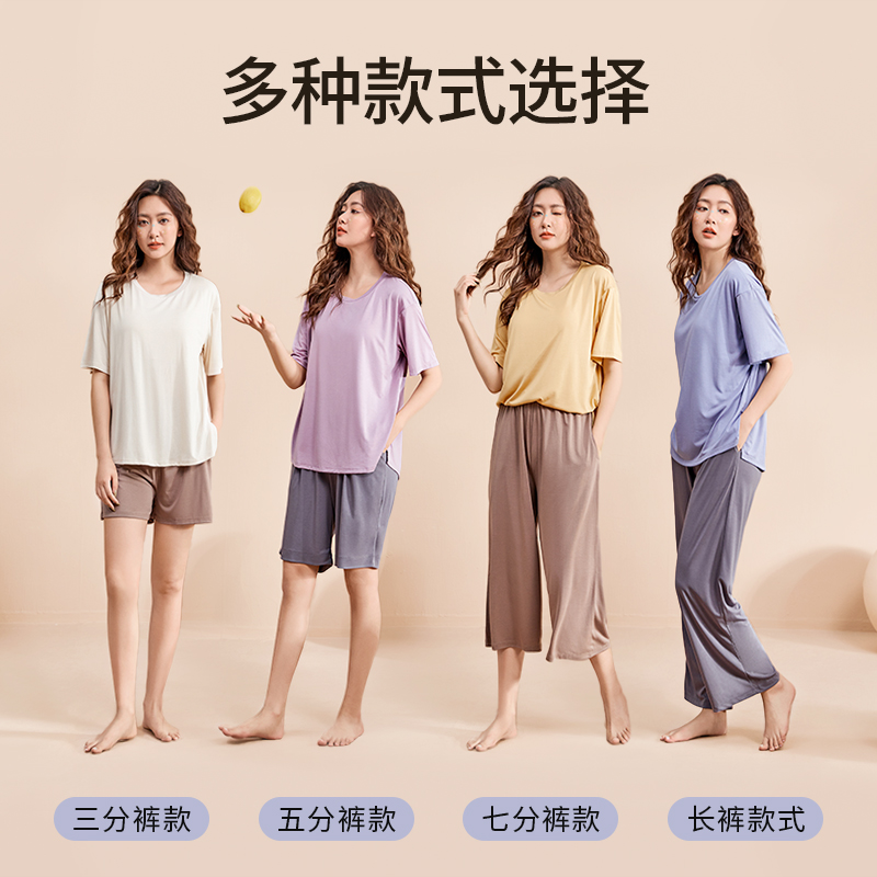 冰丝薄款 家居服外穿两件套装 2025年新款 带胸垫大码 短袖 睡衣女夏季