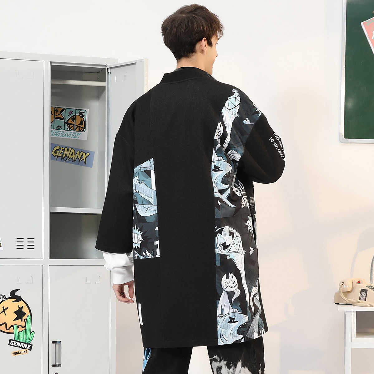 外套 网布拼接早秋薄款 GENANX闪电潮牌中长款 风衣卡通漫画印花个性
