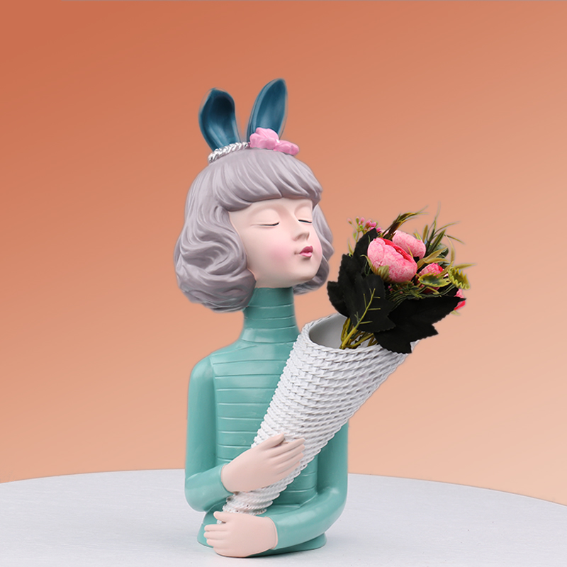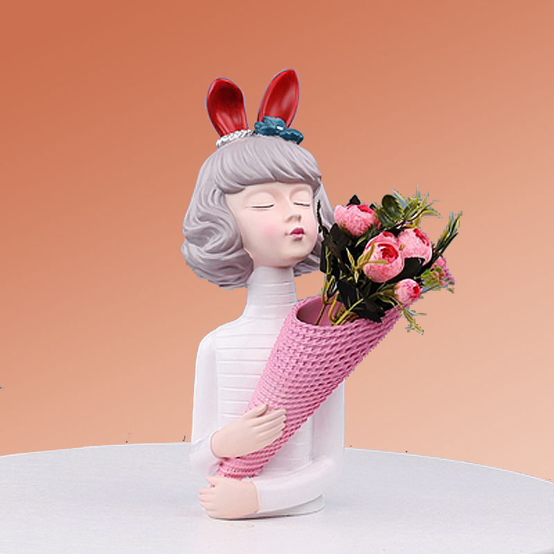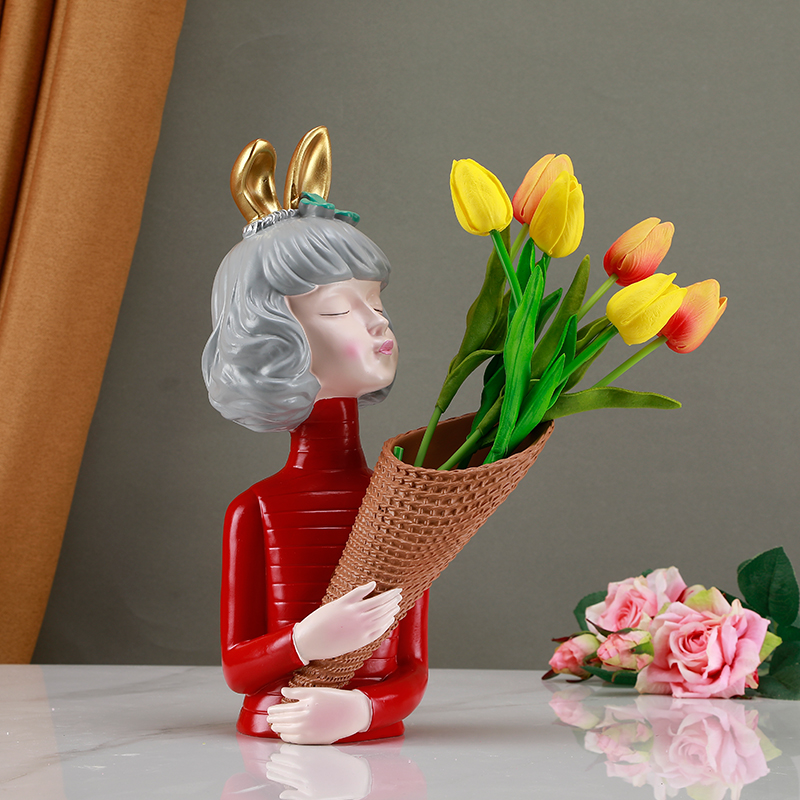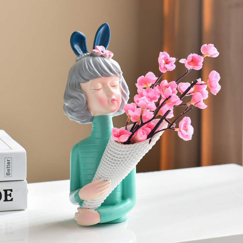 北欧可爱捧花女孩花瓶摆件客厅玄关电视酒柜家居装 饰轻奢乔迁礼品
