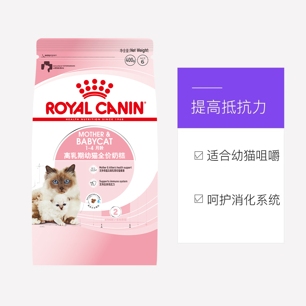 400g 4个月离乳期幼猫全价奶糕BK34 法国皇家1 3宠物干粮 自营