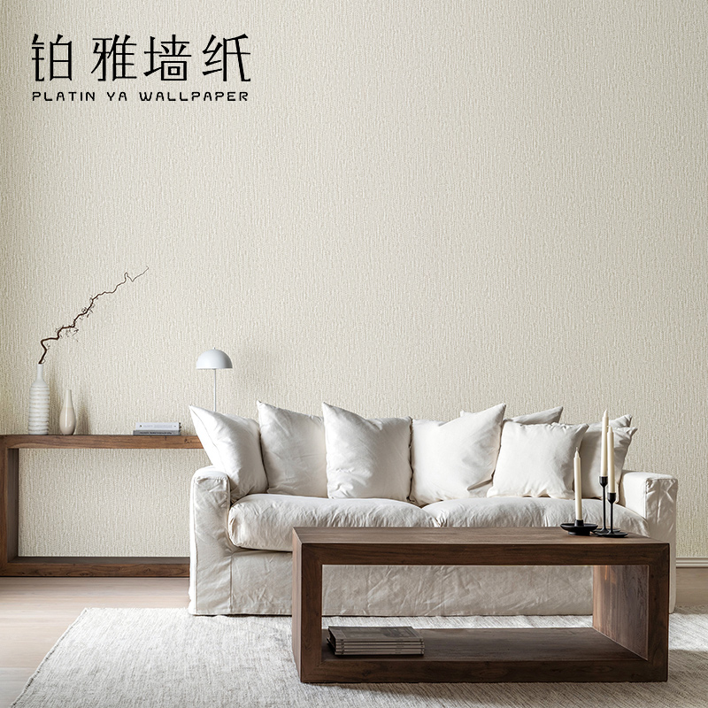日式 客厅卧室墙纸非自粘米白 纯色素色无纺布亚麻布纹壁纸2025新款