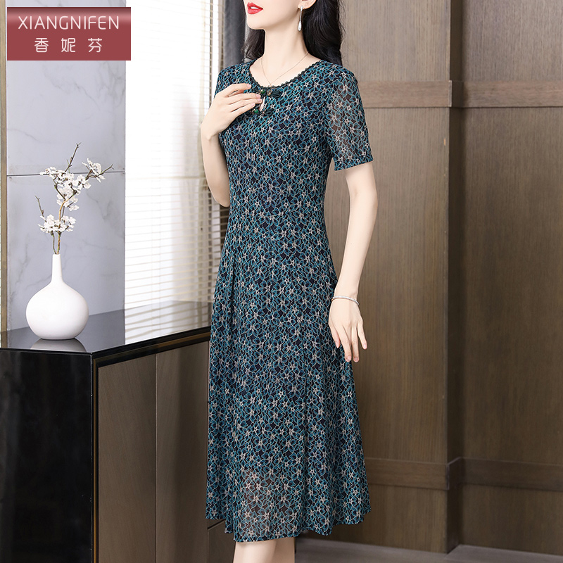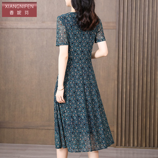 香妮芬高端精致中年妈妈连衣裙高级感夏装 气质休闲通勤裙 2025新款