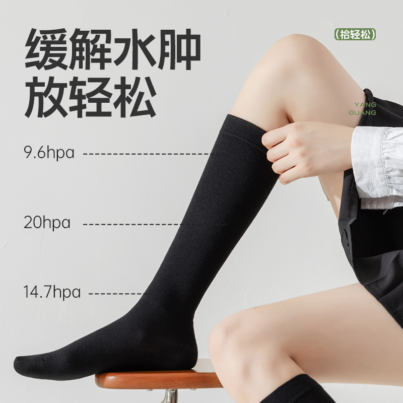 压力小腿袜女春秋jk袜子ins潮强压瘦腿长筒袜黑色显瘦及膝长袜