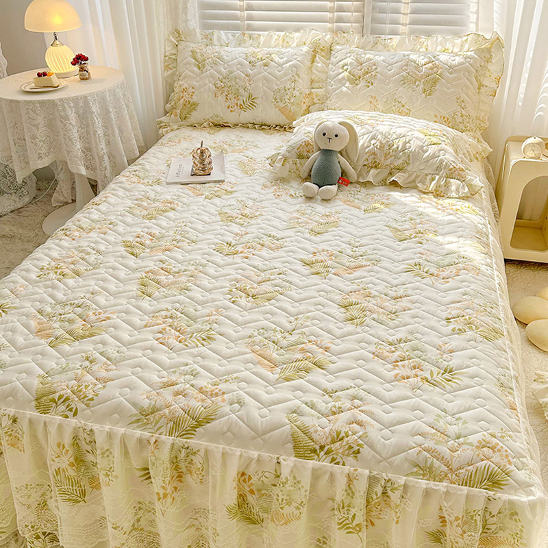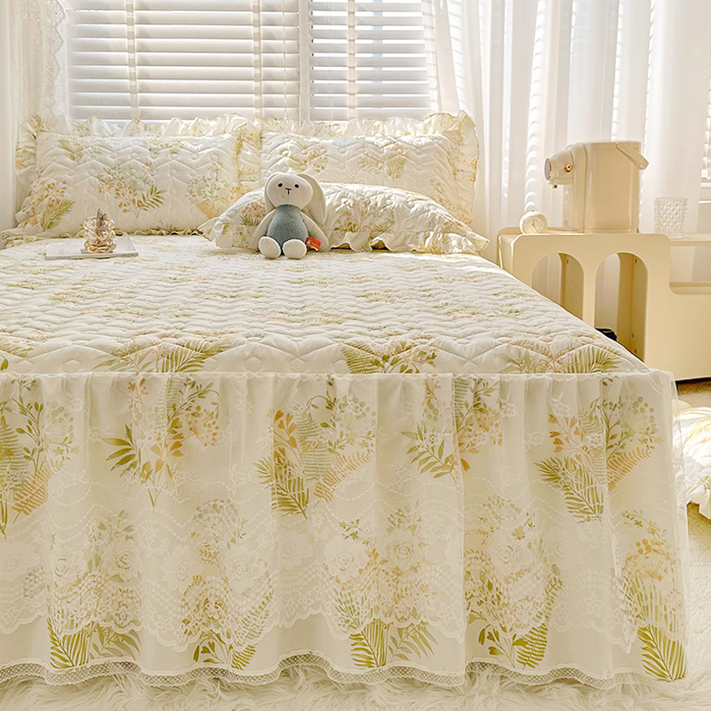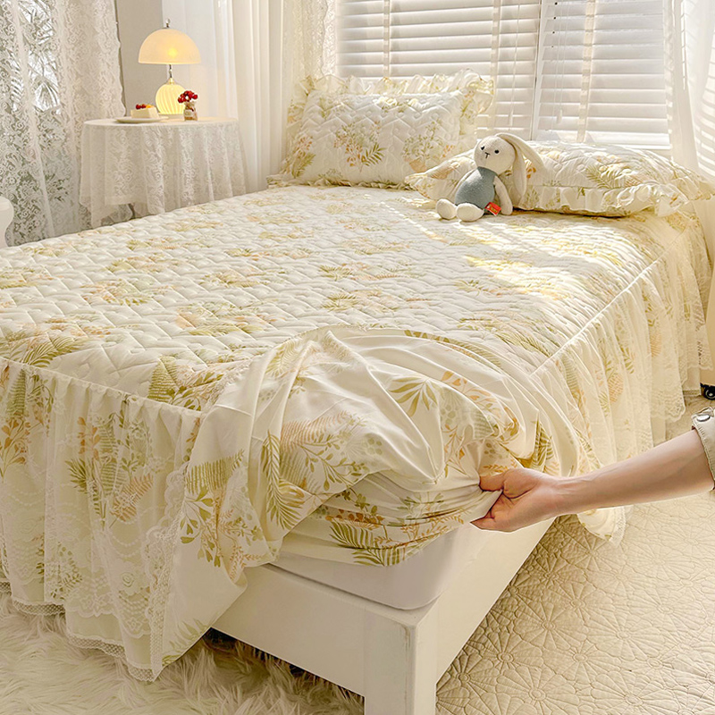 2025新款 通用 仙女风蕾丝边芦荟棉夹棉床裙三件套单件床罩床套四季