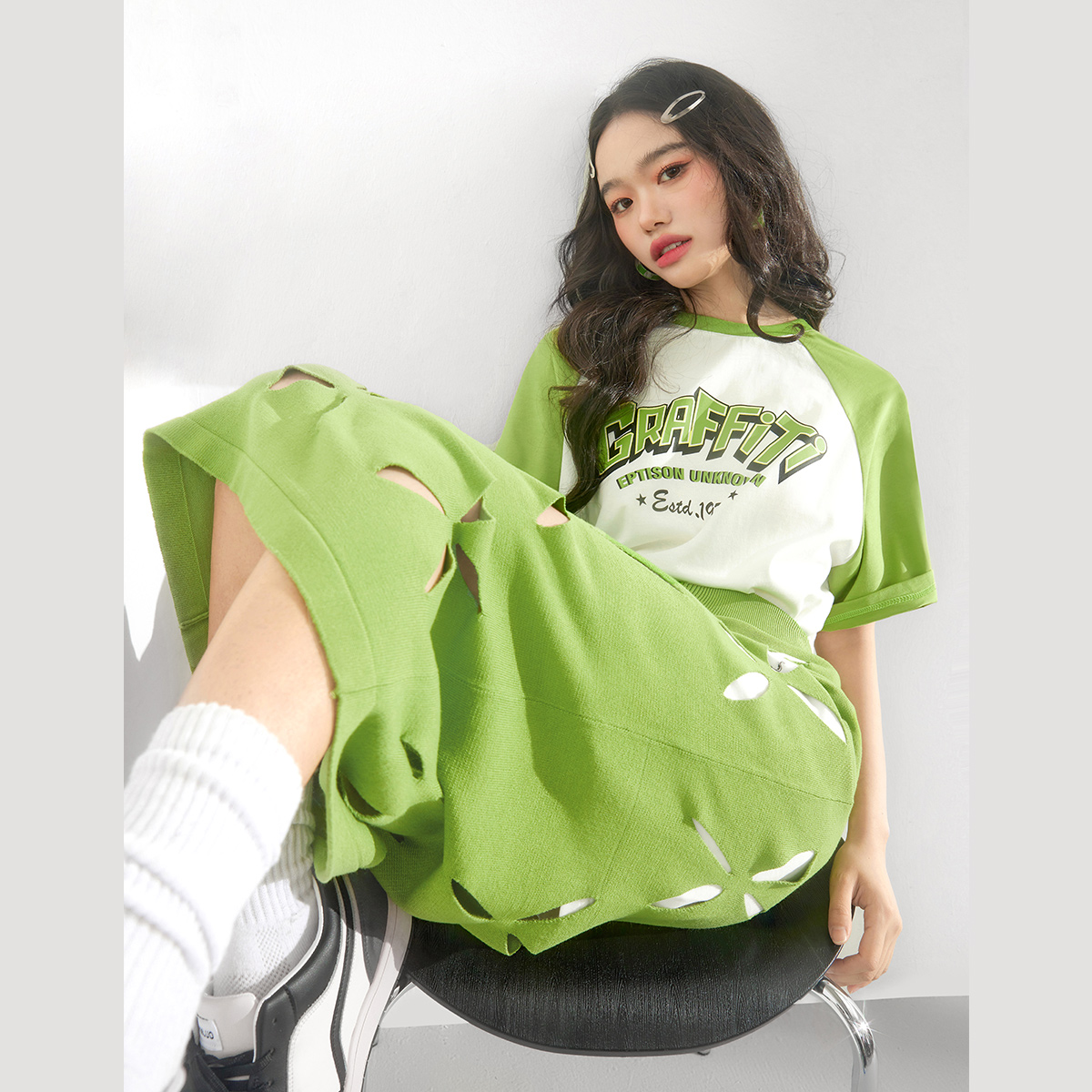 套装 甜辣长款 女2025夏季 美式 T恤裙半身裙两件套 新款 EPTISON时尚