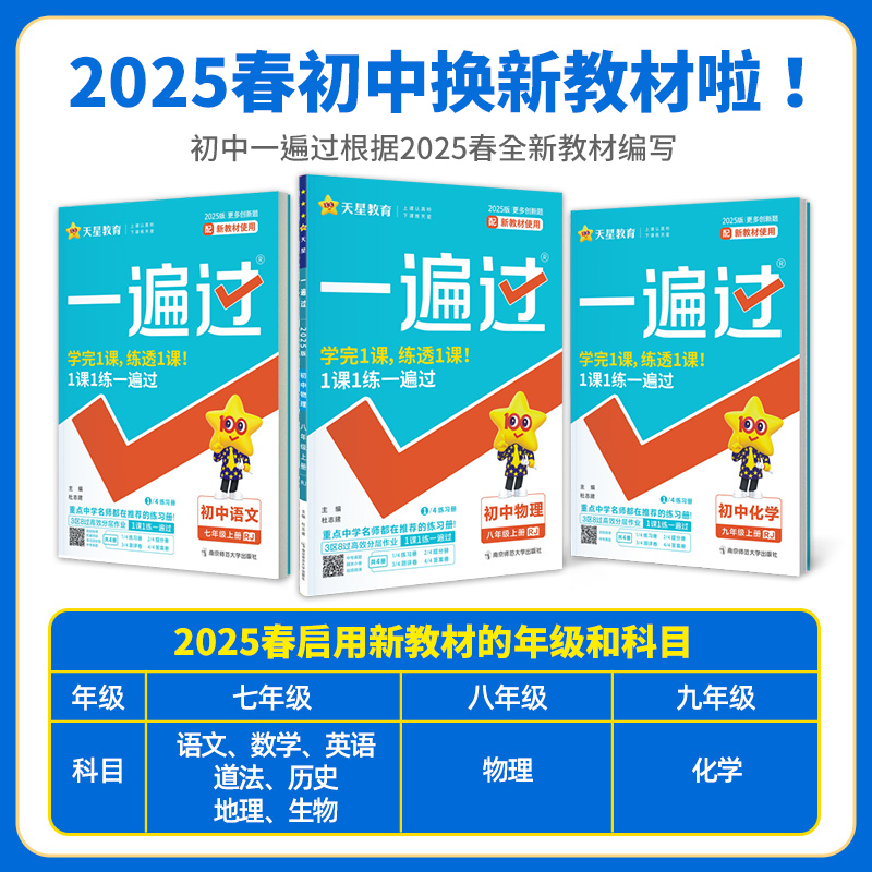 2025秋一遍过初中七八九年级下册上册人教版 北师英语数学语文物理化学地理历史政治初一二三教材同步练习册试卷初中天星教育