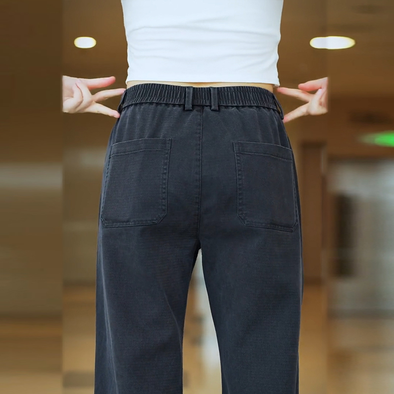 高腰显瘦百搭休闲阔腿裤 复古港风丹宁蓝阔腿微喇牛仔裤 女秋冬爆款