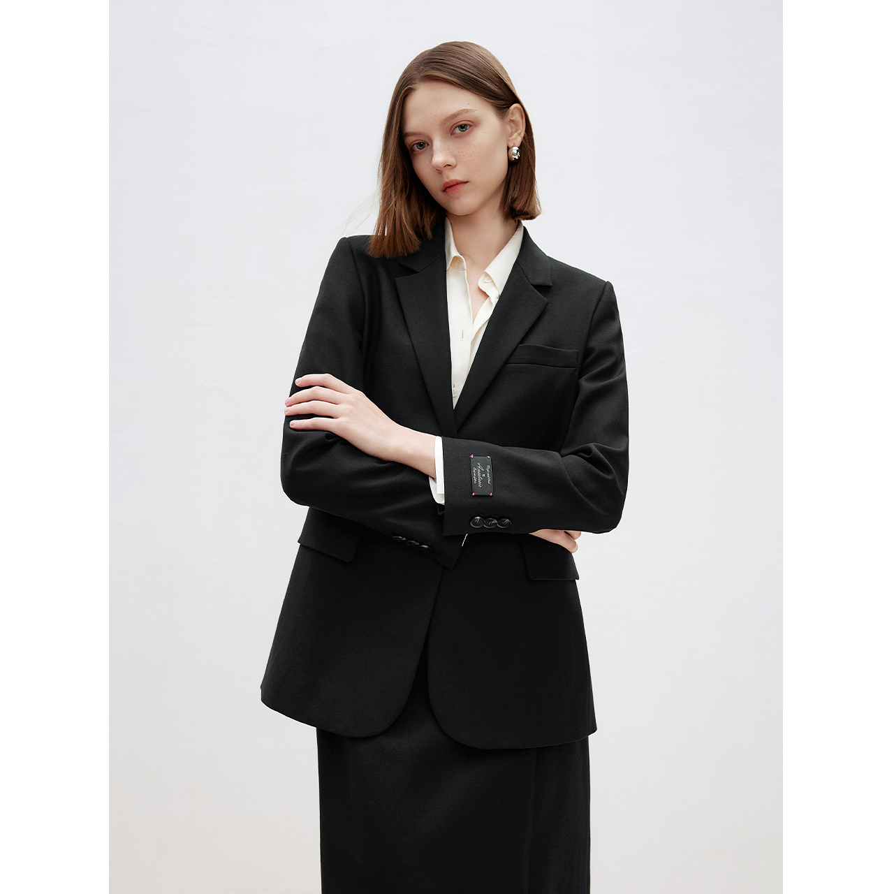 外套2025春新款 朗姿法式 气质黑色西装 半身裙高级感气质修身 西服