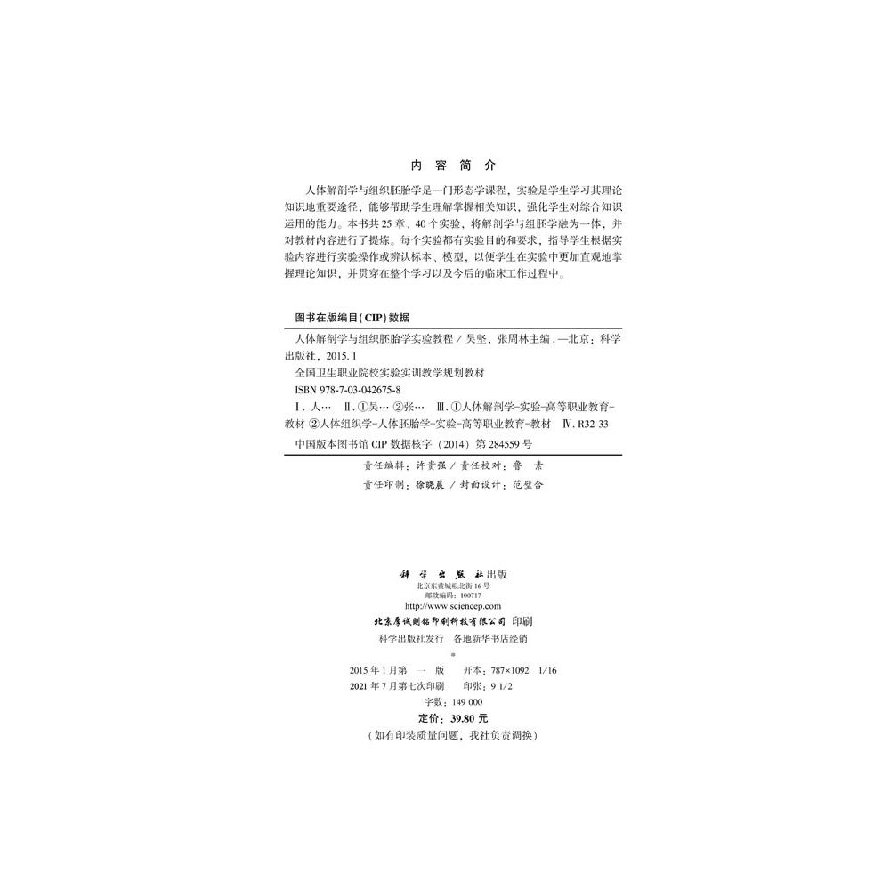 社 科学出版 全新正版 人体解剖学与组织胚胎学实验教程