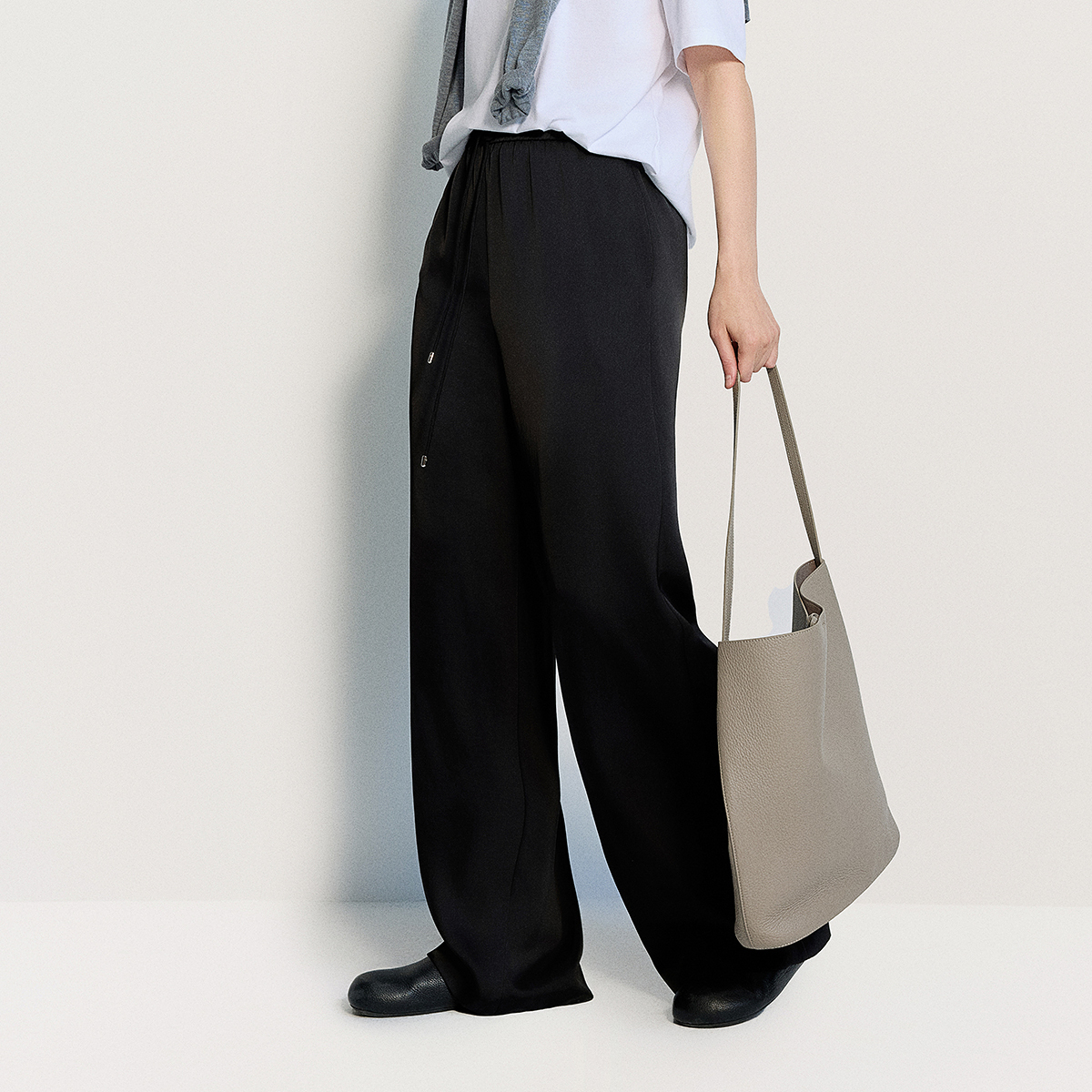 女垂感松紧腰通勤显瘦2025早秋新品 OCHIRLY欧时力 缎面直筒长裤