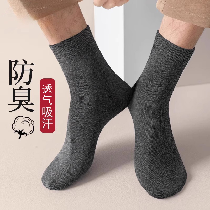 黑色商务长筒袜 防臭吸汗透气运动袜春夏男士 袜子男中筒袜春季 薄款
