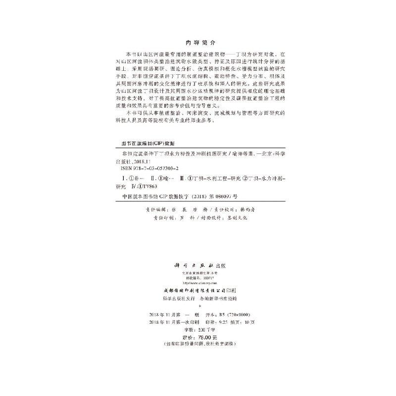 科学出版 全新正版 等 喻涛 社 非恒定流条件下丁坝水力特性及冲刷机理研究
