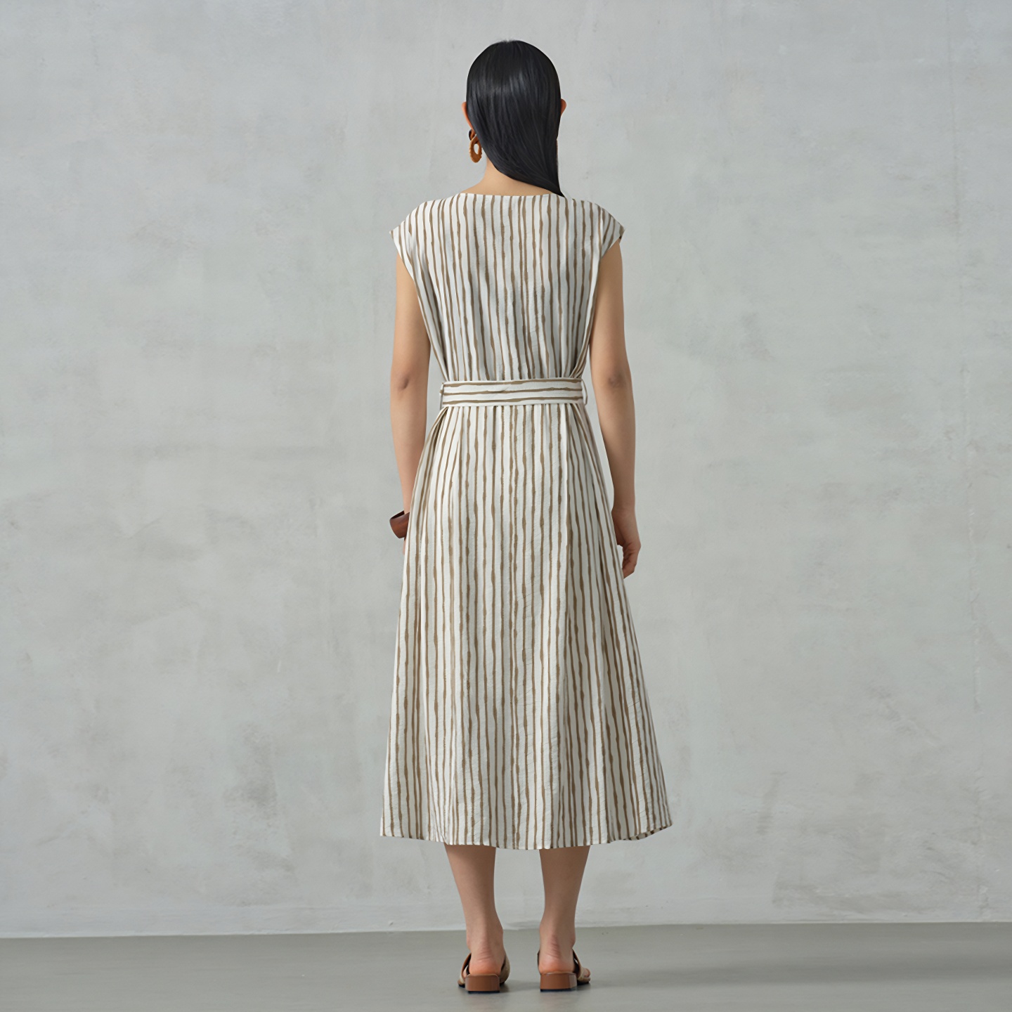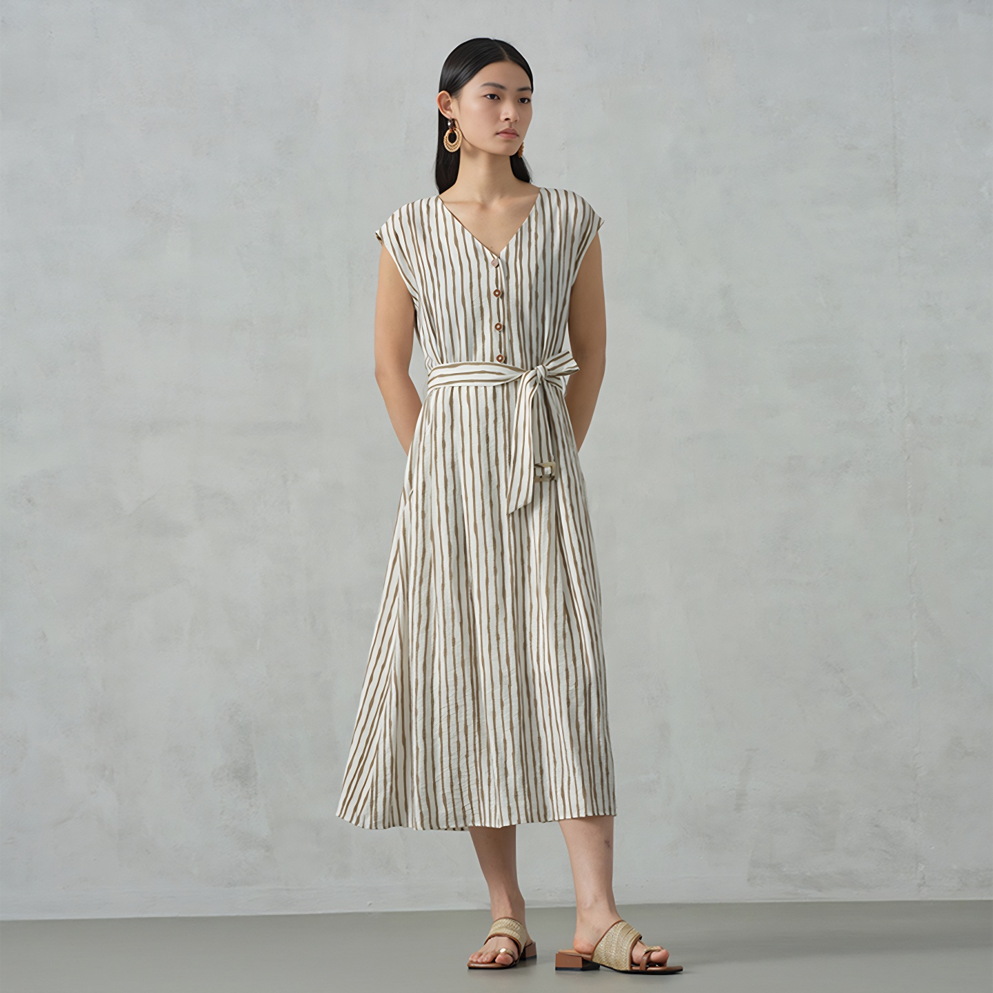 COCOBELLA度假风提花褶皱吊带连衣裙女25夏气质吊带裙FR3077