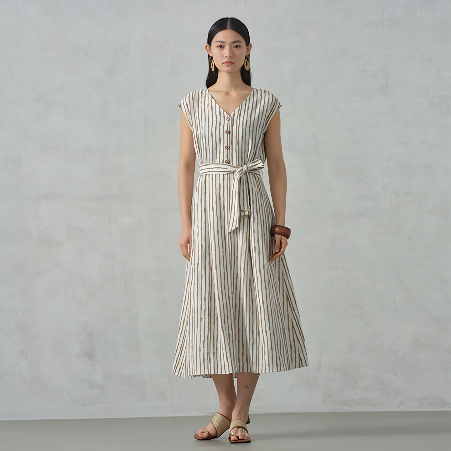 显高显瘦淡人风通勤约会 连衣裙女V领无袖 TieForHer Vinci微醺短款