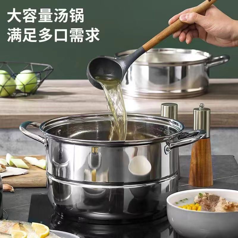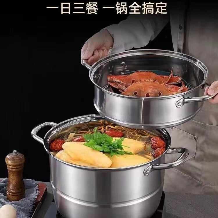 特厚不锈钢蒸锅欧式 多功能家用蒸煮锅蒸屉蒸笼汤锅礼品