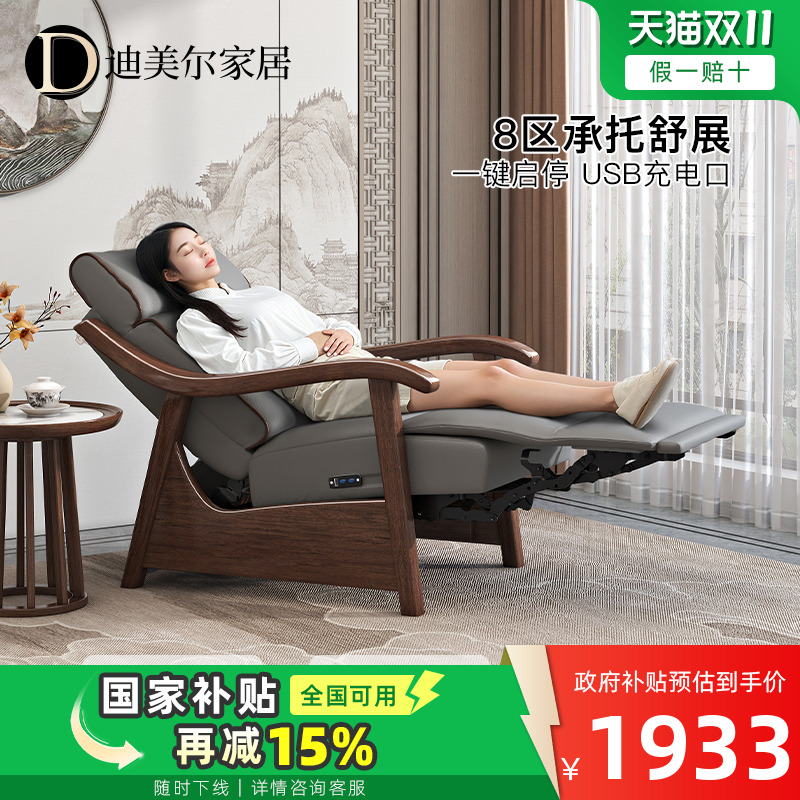 政府补贴电动单人沙发客厅实木胡桃木沙发椅躺椅阳台懒人椅休闲椅