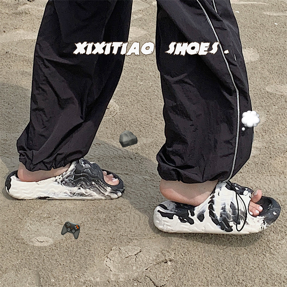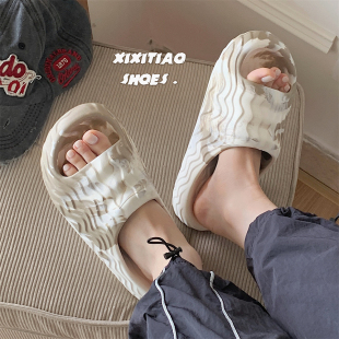 外穿百搭街头风休闲一字拖鞋 凉拖情侣夏季 潮酷ins拼色时尚 细细条
