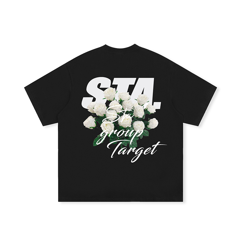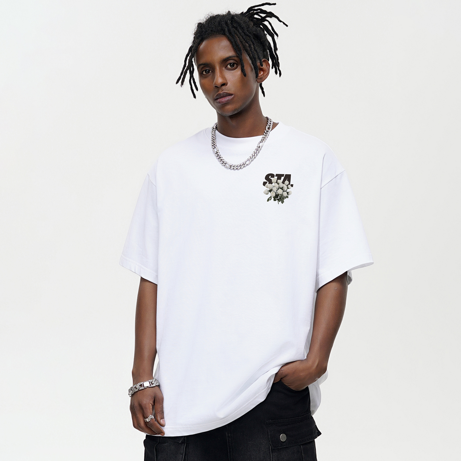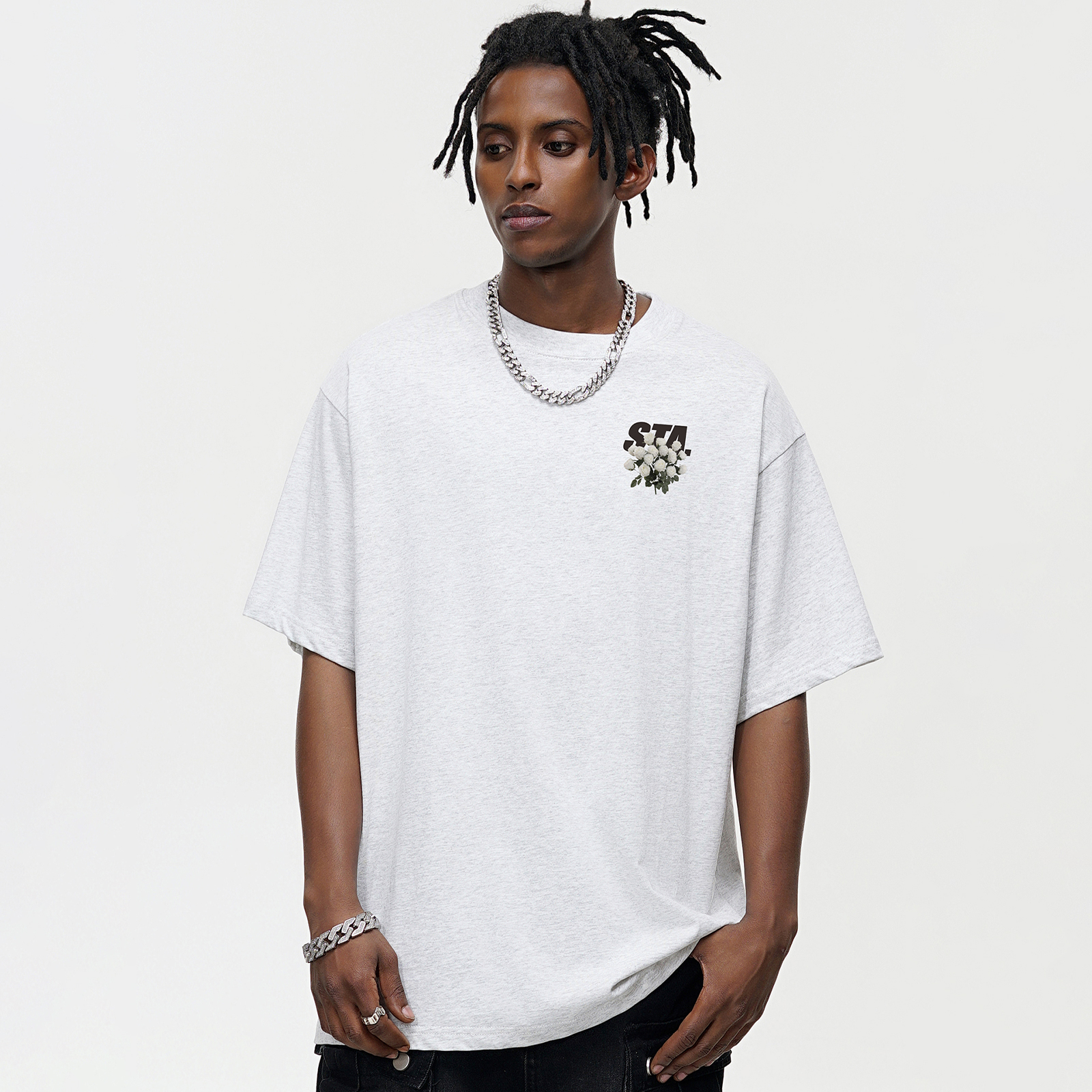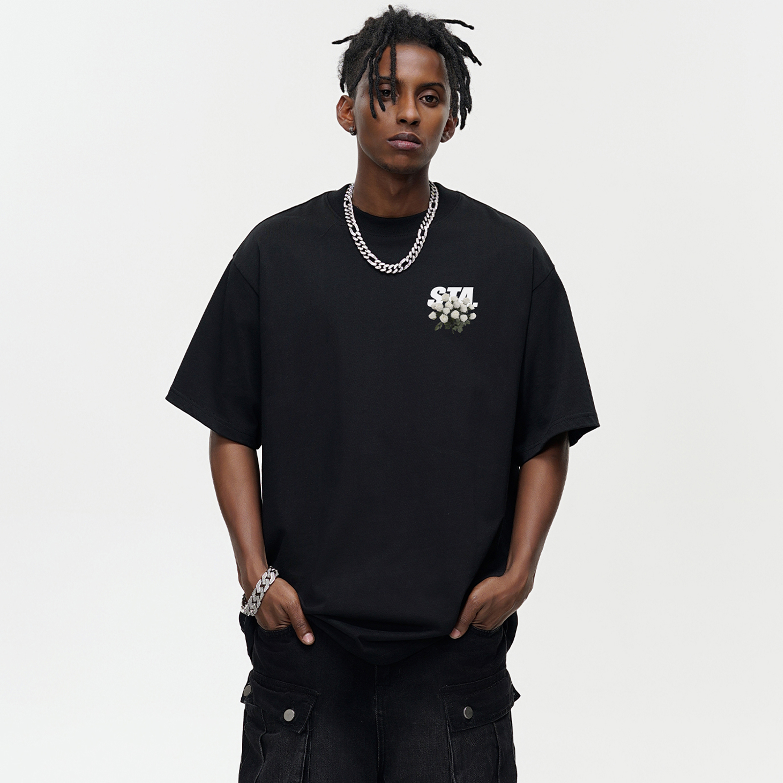 新款 T恤男女夏季 宽松休闲百搭情侣 复古玫瑰印花纯棉短袖 STA美式