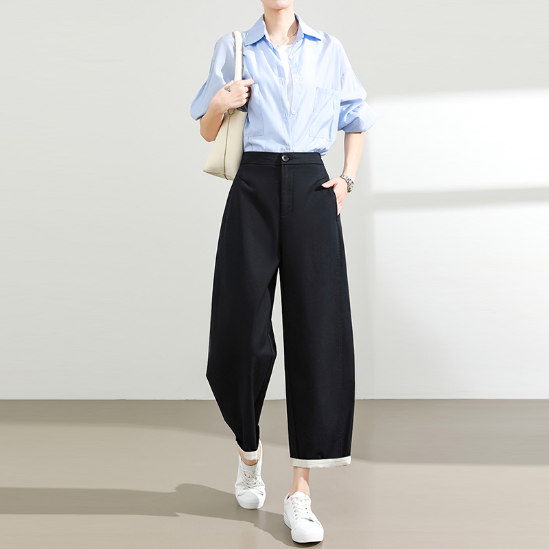 高级宽松bf慵懒垂感直筒加绒休闲阔腿裤 2025新款 子女春秋季 糯米裤