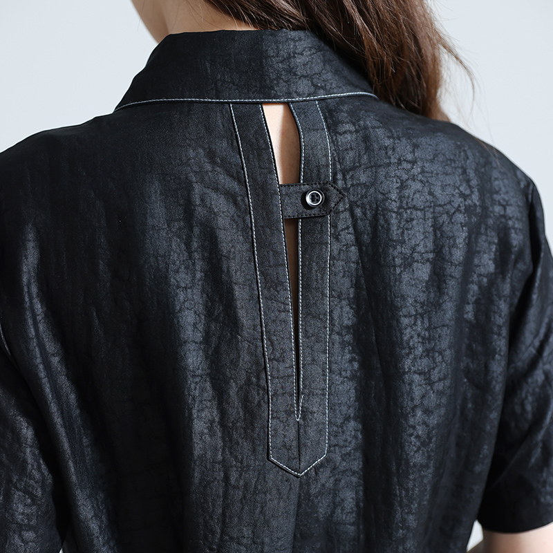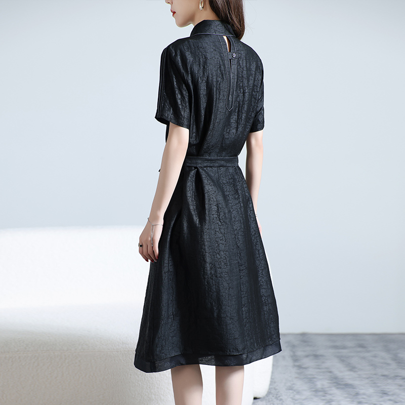 高端龟裂纹香云纱连衣裙女中长款 2025夏气质收腰设计感桑蚕丝裙子