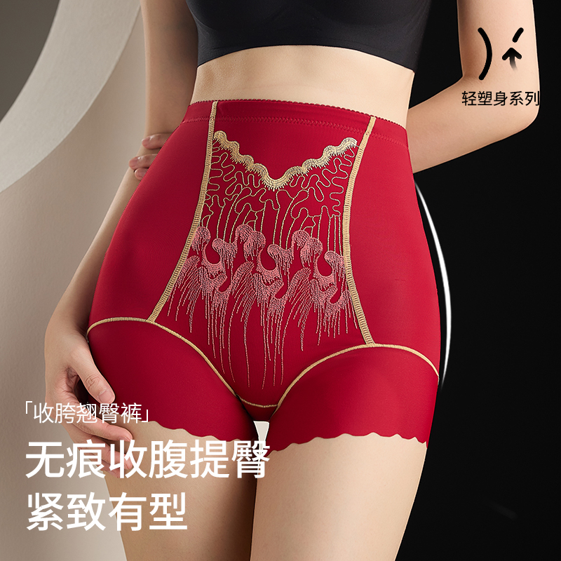 收腹提臀塑型无痕产后美体塑身裤 蔓雅夫人高腰轻奢刺绣安全裤 大码