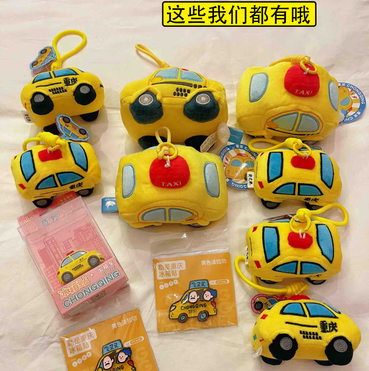 黄色法拉利毛绒玩具重庆出租车挂件猫 天空之城玩偶公仔包包文创