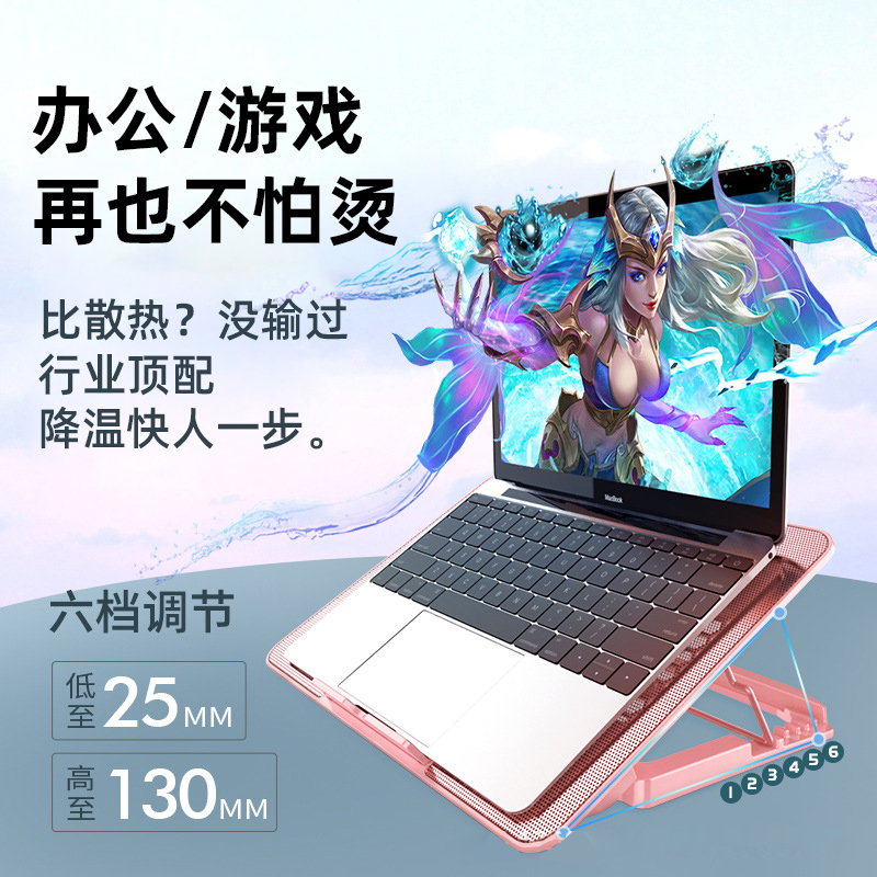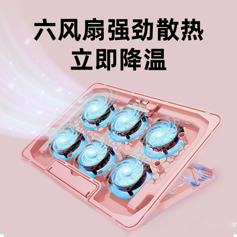 笔记本散热器底座风冷压风式 静音游戏本手提电脑降温神器排风扇支架粉色可爱女生专用适用联想苹果华硕戴尔