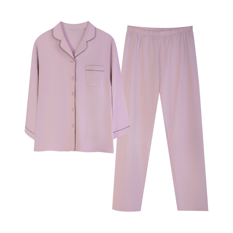 休闲家居两件套装 长裤 女士全棉精梳翻领长袖 帝日斯诺2024新款