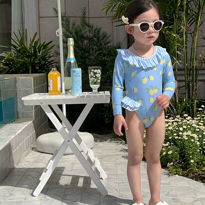 可爱花边公主泳装 泳衣连体长袖 中小童游泳速干衣 新款 儿童宝宝夏季