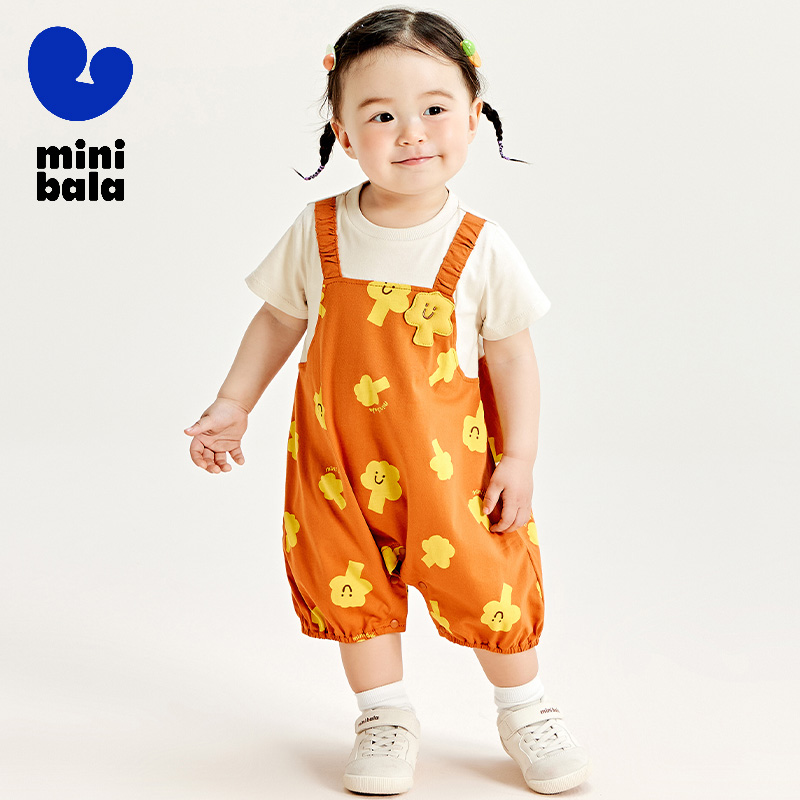 宝宝背带假两件爬服 迷你巴拉巴拉男童女童夏季 纯棉婴儿连体衣