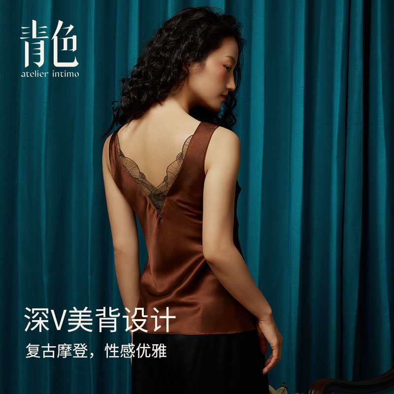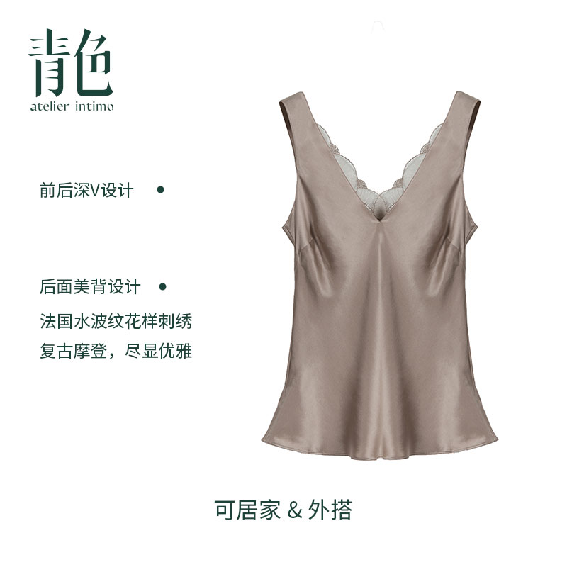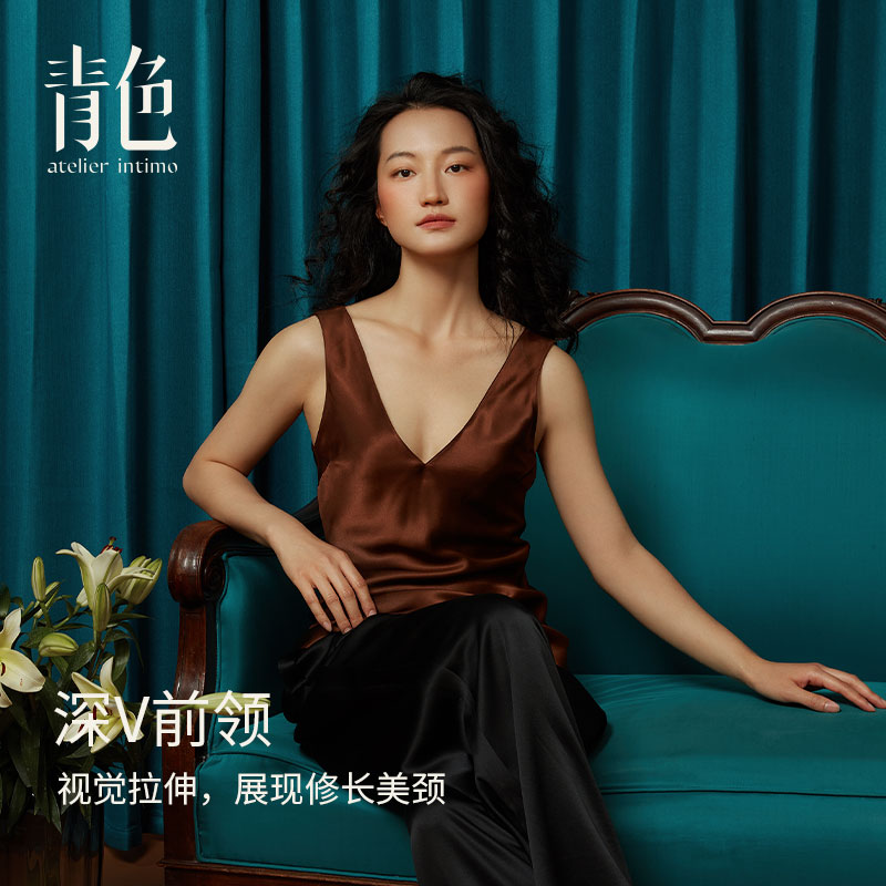 女桑蚕丝家居服真丝睡衣 青色吊带背心2024新款 涟漪背心