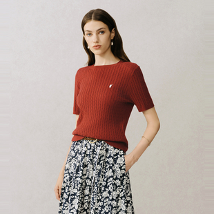 纯色内搭针织T恤女薄款 POLOWALK短袖 2025秋冬针织短袖 女式 针织衫