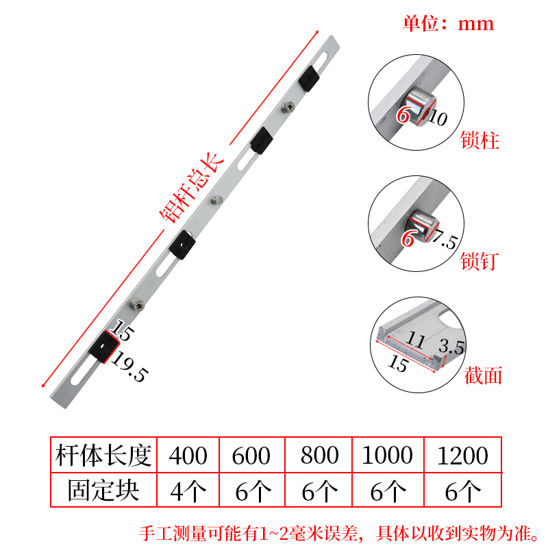50型铝合金窗传动杆多点锁二连杆纱窗传动杆非标铝杆明装 锁条挂条
