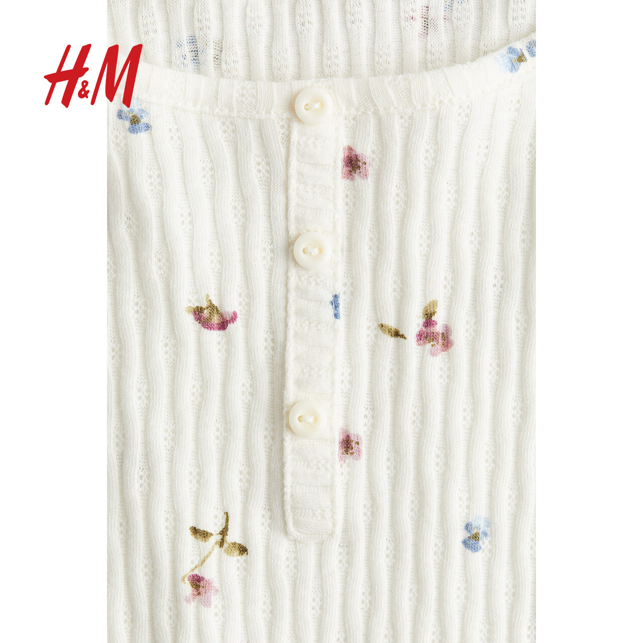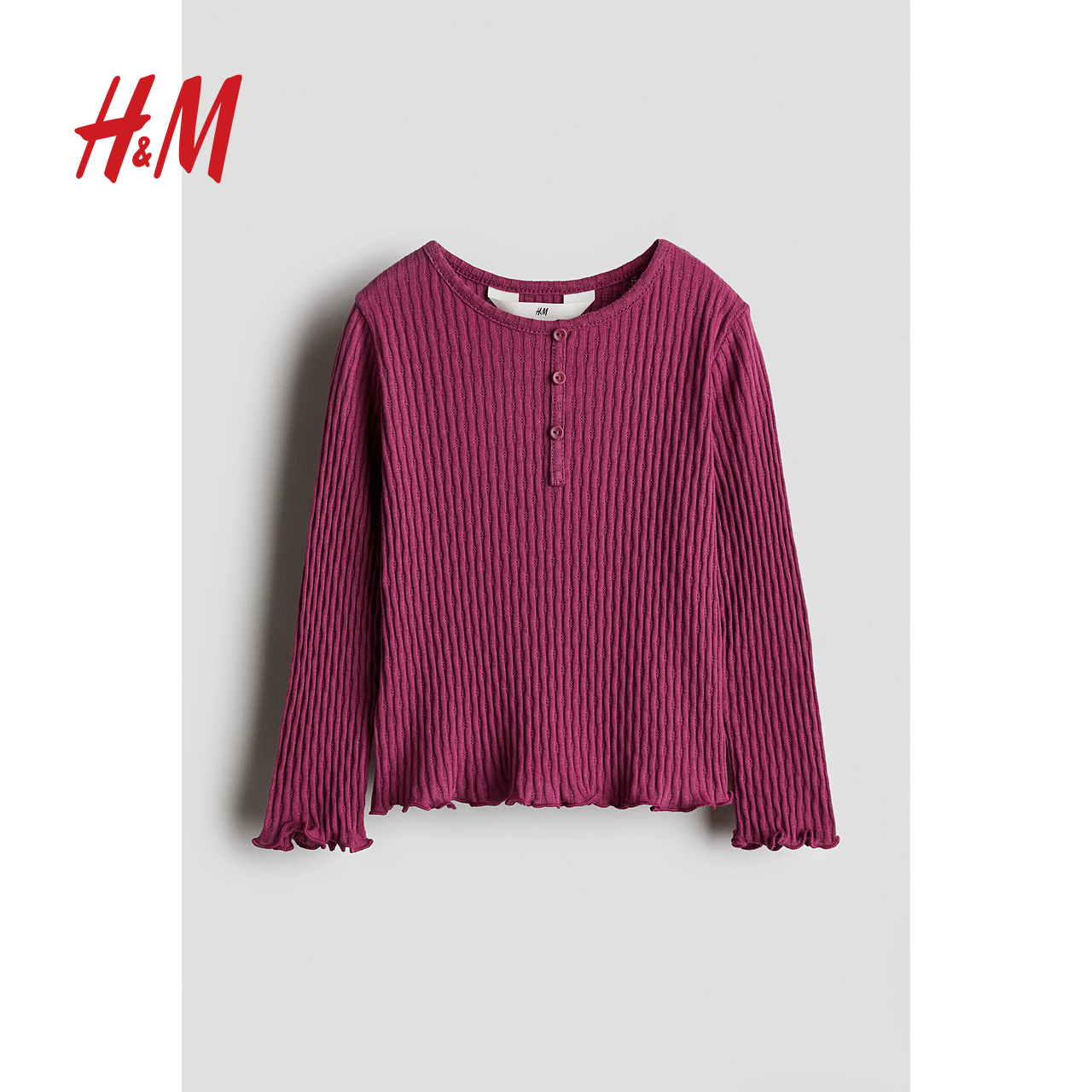 HM童装 圆领打底内搭印花网眼汗布套头上衣1270146 儿童女童T恤长袖