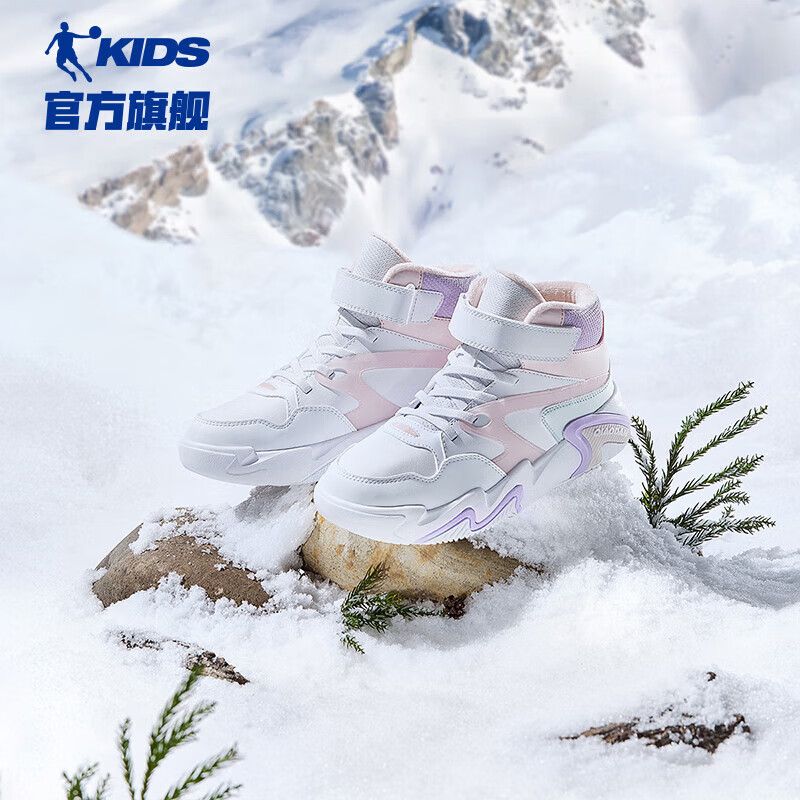 皮面保暖中大童女童加绒运动鞋 乔丹高帮儿童板鞋 新款 2025春季 童鞋