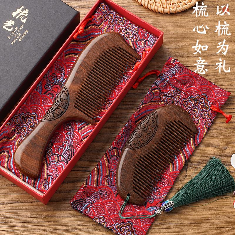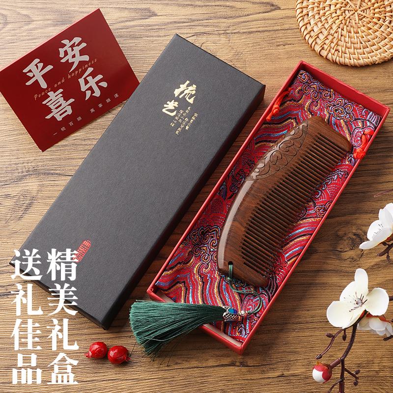 天然檀木梳子礼盒三八节女士专用礼物送妈妈生日送女友镜子女神节