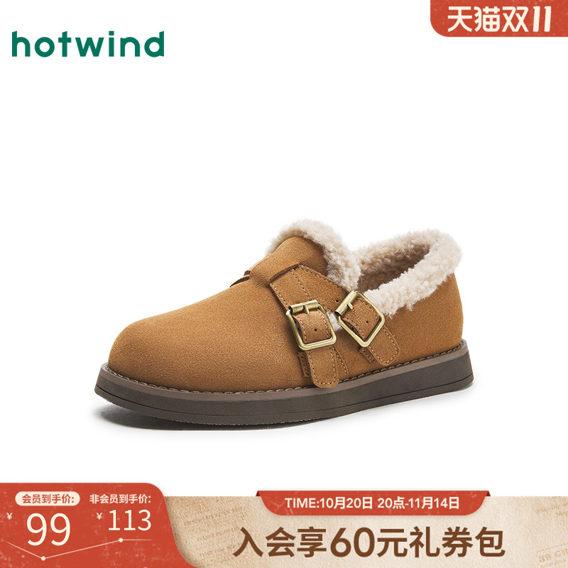 平底舒适圆头勃肯女鞋 女士加绒保暖套脚乐福鞋 新款 热风秋季