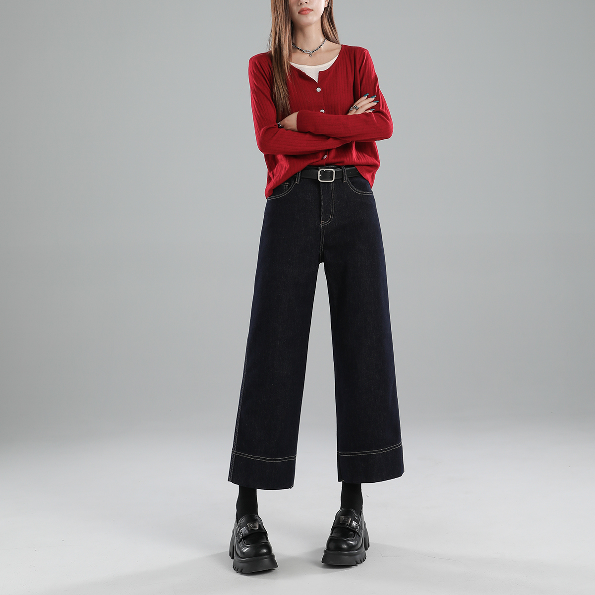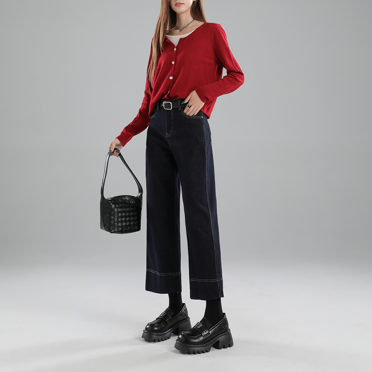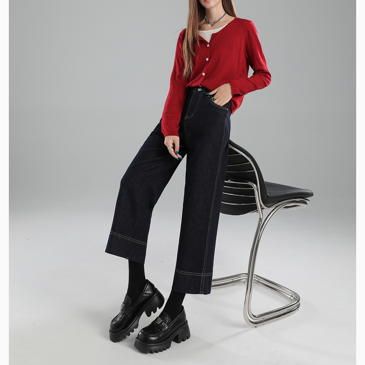 子女2025年新款 复古马蹄牛仔裤 秋季 显瘦紧身喇叭裤 高腰修身 微喇裤