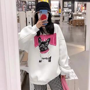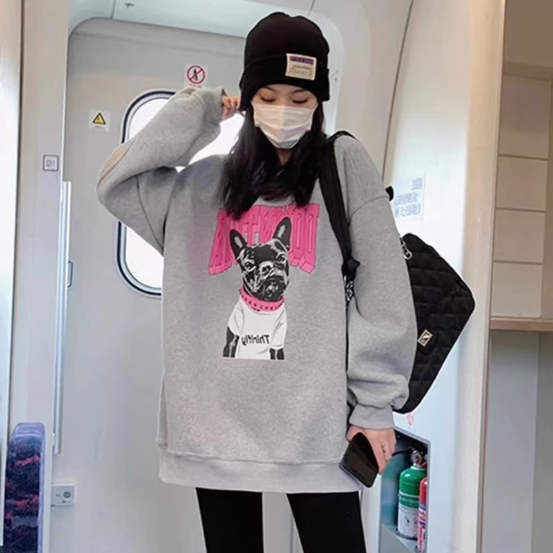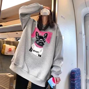 灰色加厚卫衣女秋冬小个子加绒宽松中长款 设计感遮屁股上衣潮ins