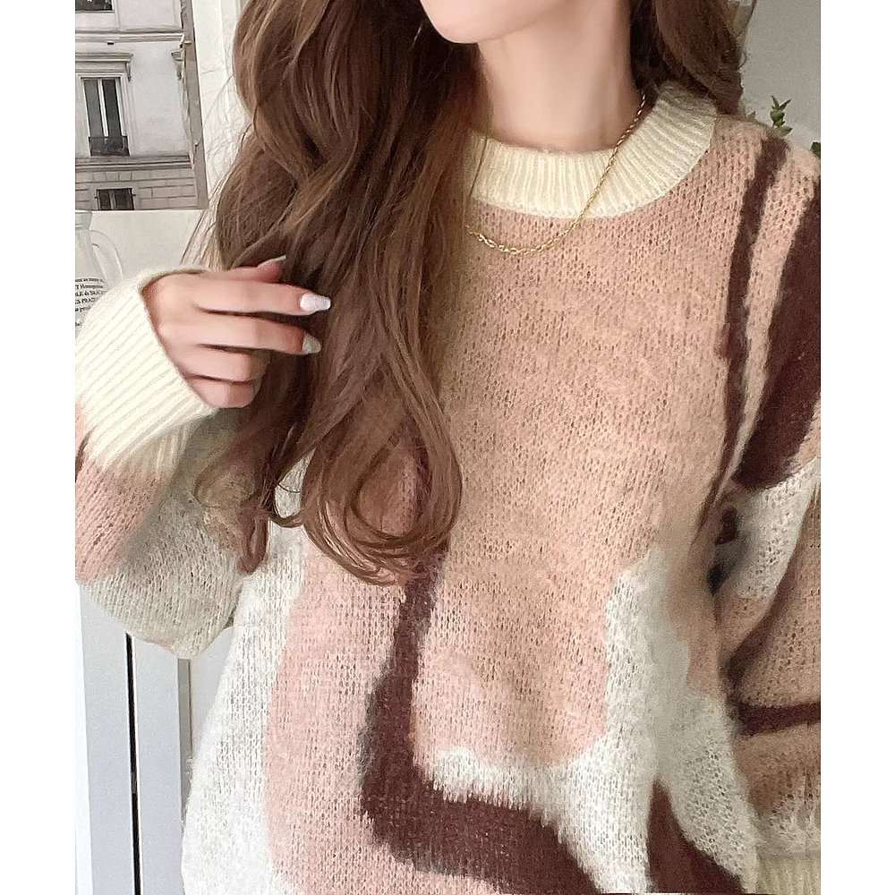 三福毛衣秋冬慵懒高级感2025新款 510472 蘑菇图案V领宽松上衣女装