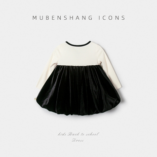 赫本风法式 太平鸟长袖 修身 中长款 船领收腰褶皱连衣裙女25春新款