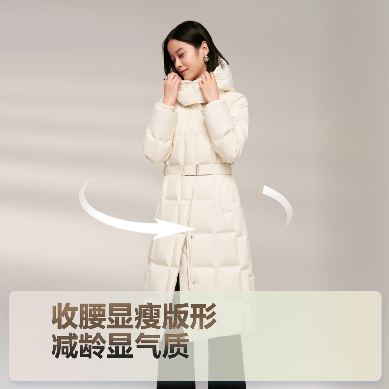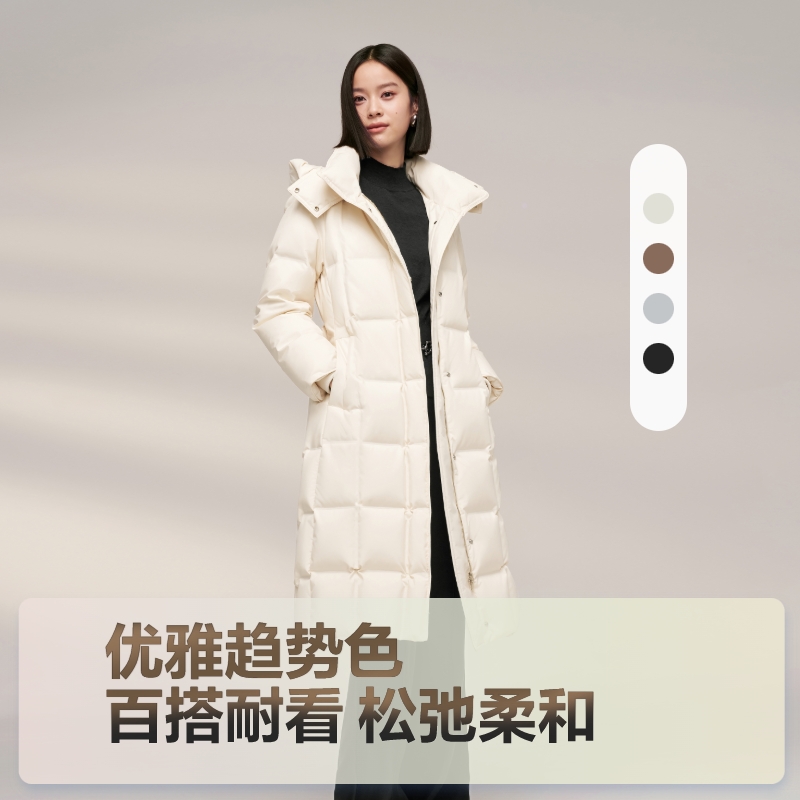轻松 龟背连帽外套 森马羽绒服女冬90绒子三防发热抗静电2025新款