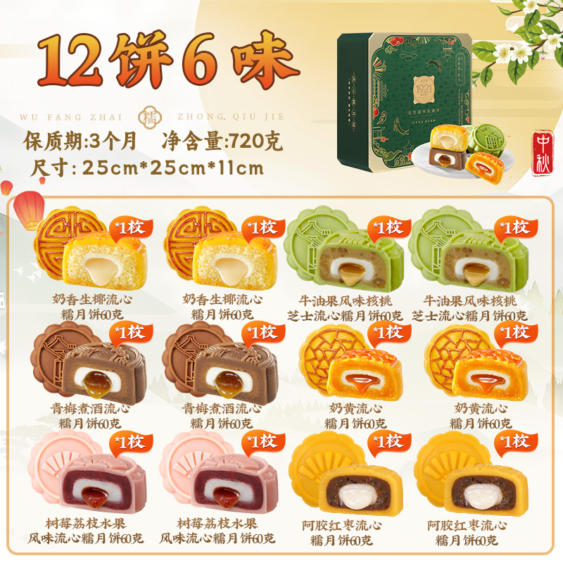 五芳斋月饼礼盒传世臻皓月四层流心奶黄奶香生椰中秋节日礼品团购