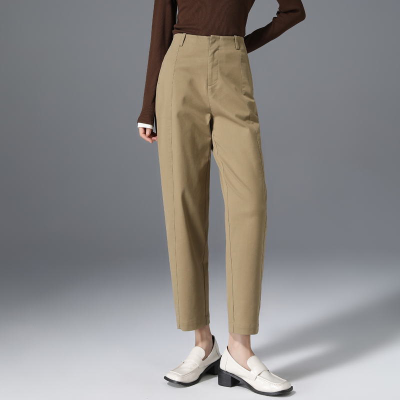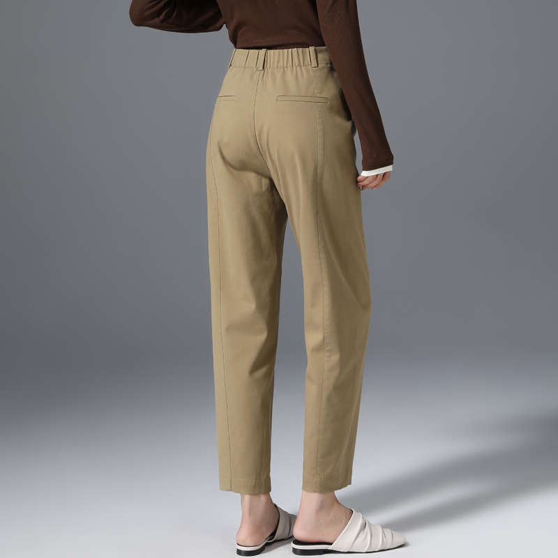 松紧腰九分休闲西裤 清仓天丝棉裤 子女春秋高腰宽松咖色锥形哈伦裤