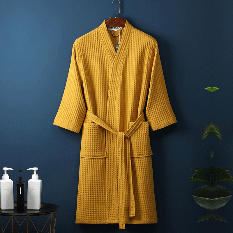 纯棉华夫格浴袍女春秋男士 睡衣酒店游泳美容院吸水 睡袍晨袍长款