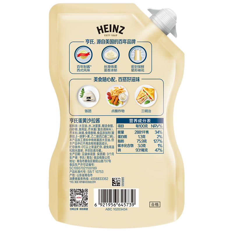 亨氏蛋黄酱家用0脂肪番茄酱料沙拉酱汁早餐三明治面包汉堡酱组合