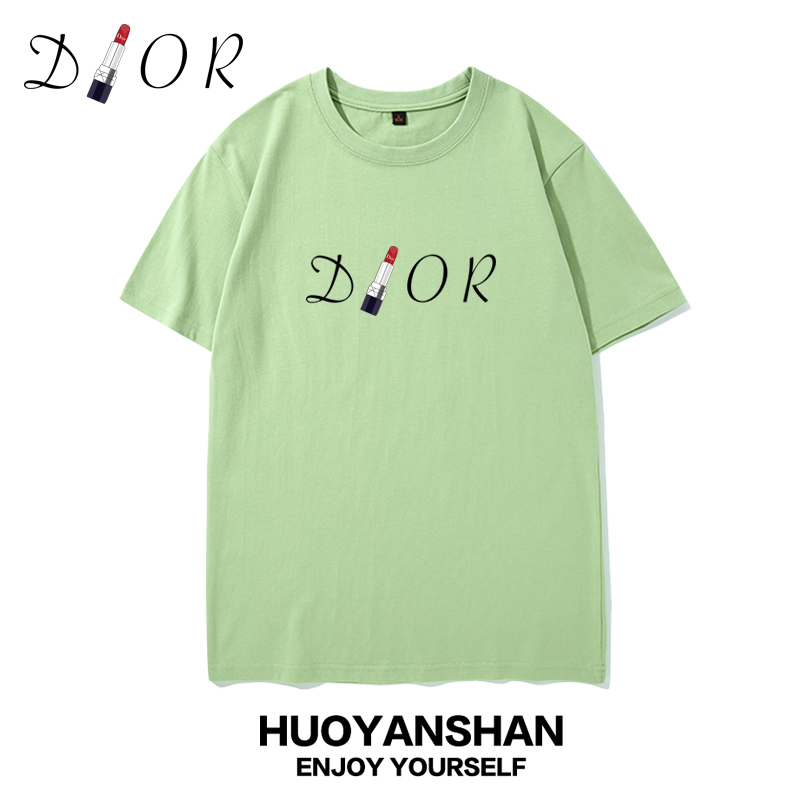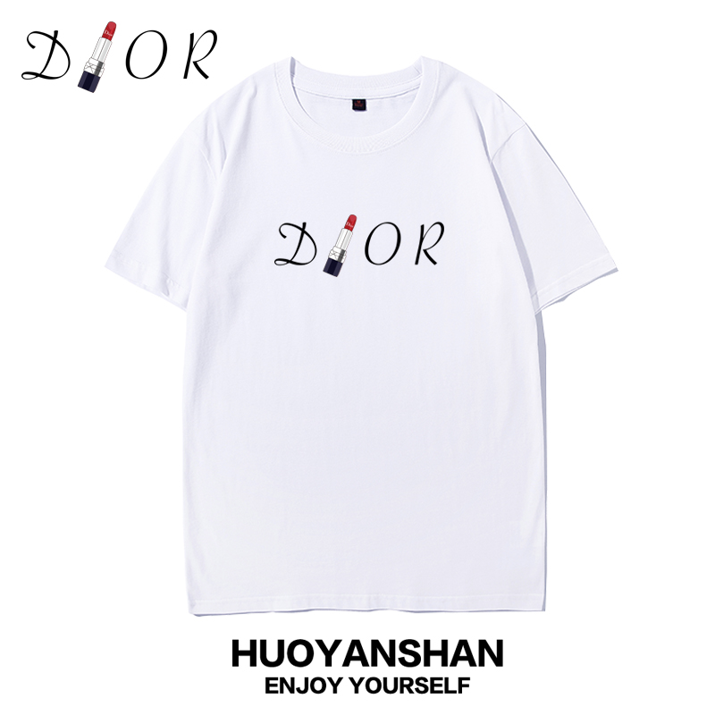 休闲运动奢侈品半袖 纯棉短袖 潮 宽松大码 口红印花t恤男女情侣夏装
