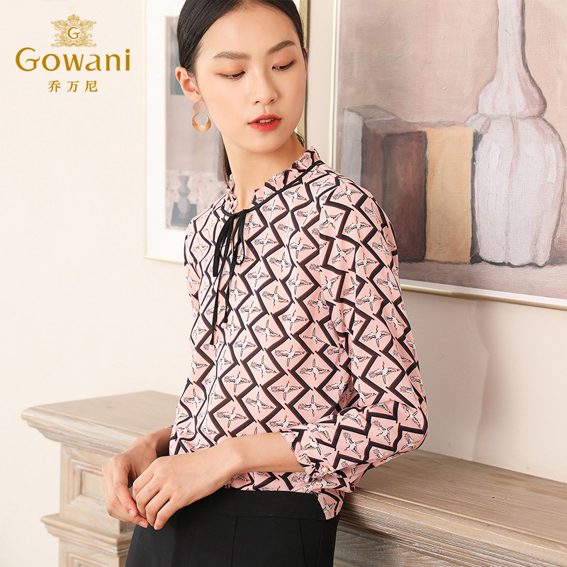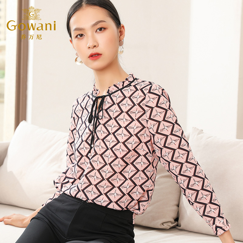 RUISHI芮时 女上衣秋 2ways可拆立领时髦显瘦通勤设计感不易皱衬衫
