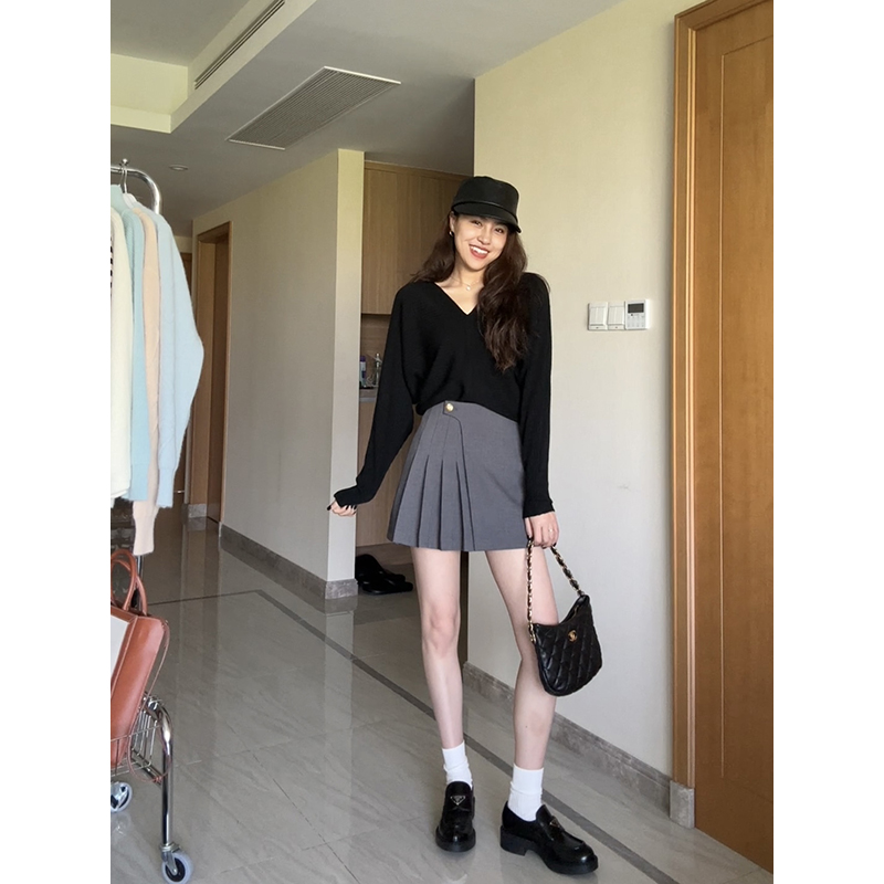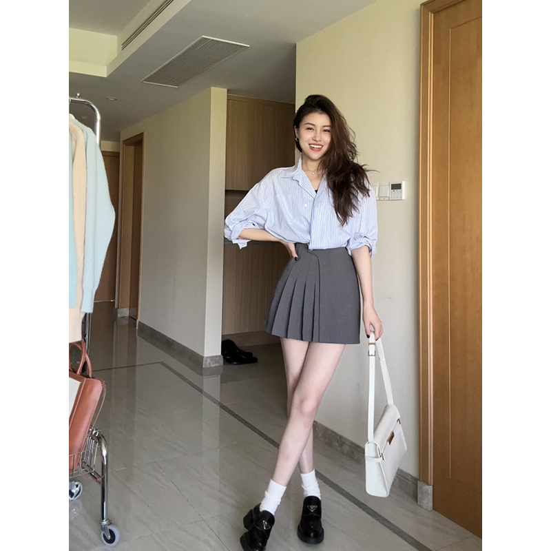 休闲气质百褶A字高腰显瘦裙 2024秋冬新款 张阿星 灰色藏肉半裙