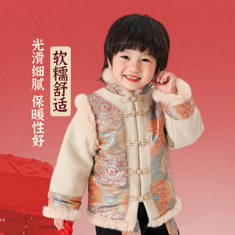拜年服男童过年喜庆衣服儿童冬季 加厚男孩2025蛇年国风外套 新年装